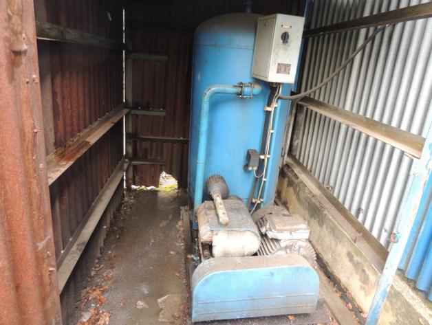 - Kompresor Orlík ČKD Žandov, vč. stojatého vzduchojemu 500 l, zkušební přetlak 1,5MPa – štítek nenalezen.