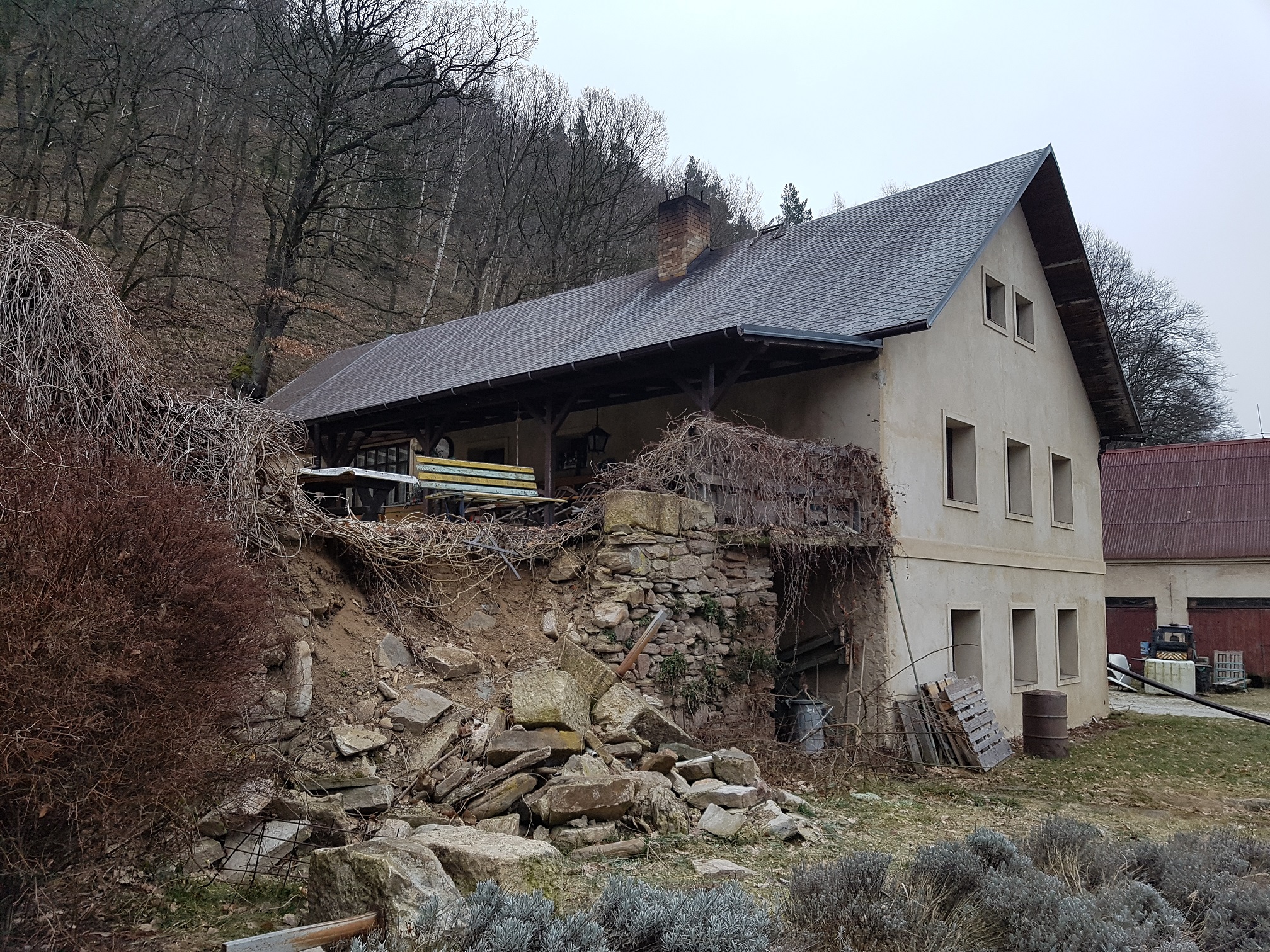 Základy tvoří základové pasy. Svislé nosné konstrukce jsou zděné smíšené kamenné a cihlové. Stropní konstrukce jsou s rovným podhledem a klenbové. Střešní konstrukce je dřevěná sedlová. Střešní krytina je z asfaltových šablon. Klempířské konstrukce jsou z poplastovaného plechu. Bleskosvod není instalován. Fasáda je vápenná cementová hladká Okna jsou dřevěná s izolačním sklem. Dveře jsou dřevěné plné nebo prosklené. Vnitřní omítky jsou vápenné štukované. Vnitřní obklady jsou v kuchyni a koupelnách. Podlahy jsou betonové s keramickou dlažbou a textilní krytinou. Schodiště je betonové a dřevěné. Vybavení kuchyně: kuchyňská linka, sklokeramická varná deska. Vybavení koupelny: vana, sprchový kout, umyvadlo, splachovací WC. Vytápění domu je ÚT kotlem na tuhá paliva. Ohřev vody je elektrickým bojlerem. Odpad je sveden do jímky s trativodem. Voda: vlastní studna - pouze užitková. Elektroinstalace je světelná i motorová. Plyn není zaveden. Stáří stavby domu nebylo doloženo, je odhadováno z roku 1910, tedy 108 let. Současný technický stav je po částečné modernizaci v roce 1996 průměrný. Celkovou životnost odhaduji na 135 let, za předpokladu řádné údržby. Součástí je samostatně stojící nepodsklepená jednopodlažní hospodářská stavba - stodola se sedlovou střechou.