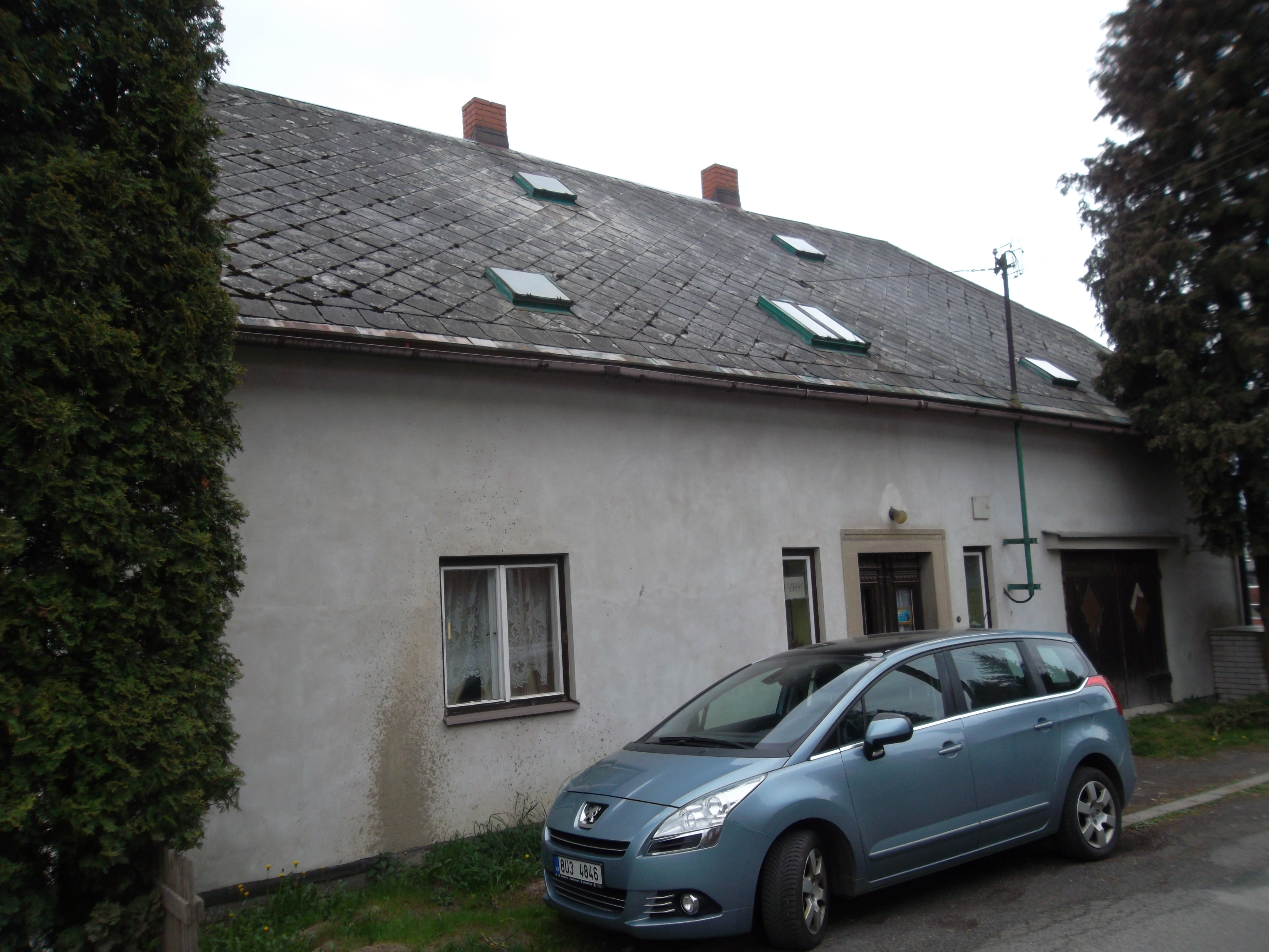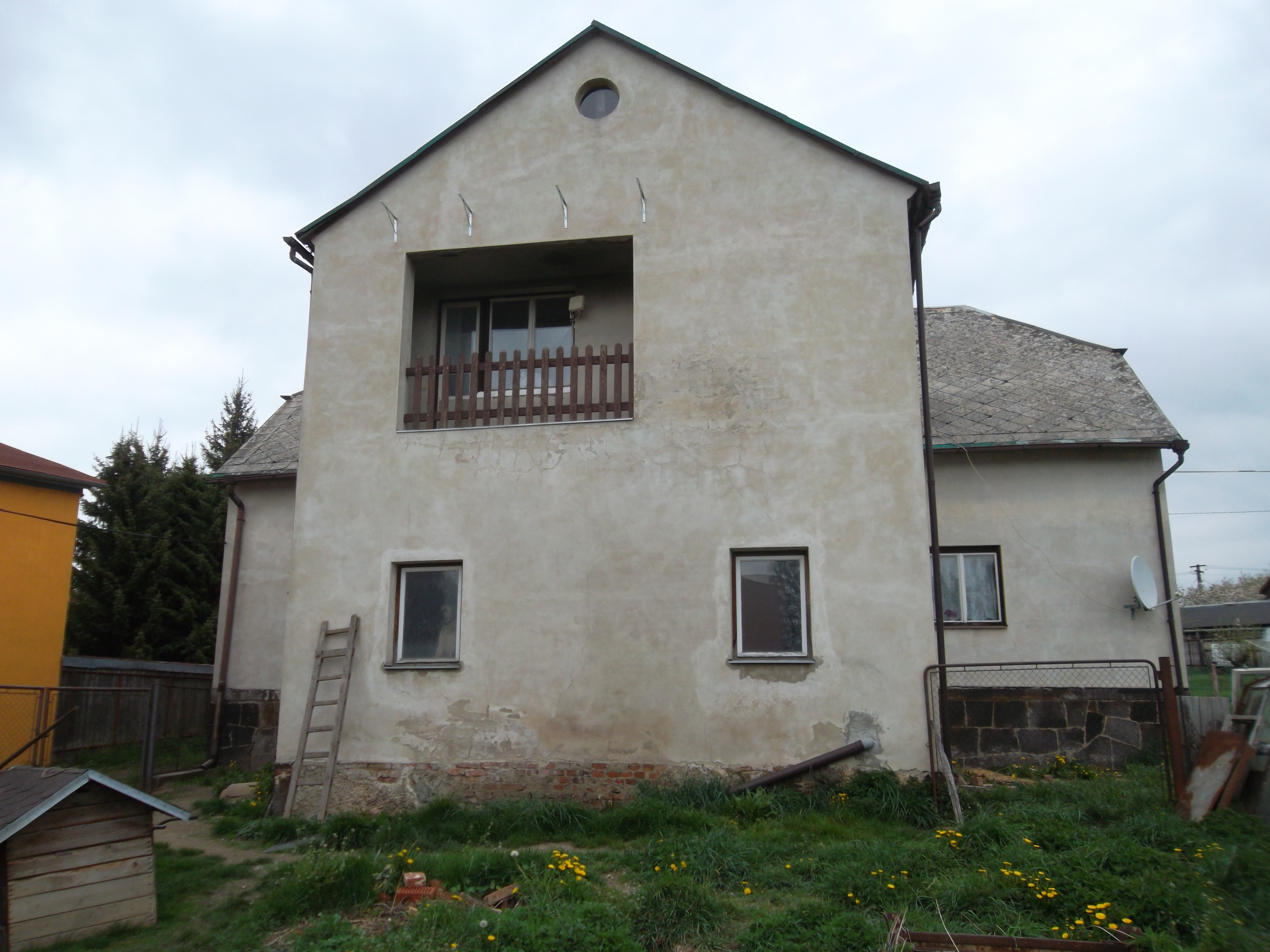 Rodinný dům je samostatný objekt a má celkem 2 nadzemní podlaží. Dům má částečné podsklepení, nachází se zde půda a je zde vybudováno obytné podkroví. Objekt byl postaven odhadem v roce 1930. Základy má betonové izolované, smíšené, objekt je smíšené konstrukce, tloušťka stěn je 45 cm a stropy jsou tvořeny dřevěnými trámy. Střecha je polovalbová, na rizalitu sedlová, střešní krytinu tvoří eternitové šablony a klempířské prvky jsou plechové pozinkované. Vnější omítky jsou vápenocementové a zateplení pláště není provedeno. Dispozičně je dům řešen dvougeneračně. V domě se nachází chodba o výměře 19,70 m2, sklad o výměře 18,00 m2, sklad o výměře 6,80 m2, pokoj o výměře 15,20 m2, kuchyně o výměře 17,00 m2, obývací pokoj o výměře 26,90 m2, koupelna o výměře 4,60 m2, chodba o výměře 30,00 m2, pokoj o výměře 17,50 m2, pokoj o výměře 17,60 m2, kuchyně o výměře 20,50 m2, koupelna o výměře 13,40 m2, pokoj o výměře 20,50 m2, garáž o výměře 26,80 m2, sklep o výměře 28,00 m2, balkon o výměře 3,00 m2, půda o výměře 70,00 m2. Podlahová plocha činí 227,70 m2. Podlahová plocha vč. příslušenství činí 355,50 m2. Vnitřní omítky: vápenocementové, štukové. Jsou zde zdvojená dřevěná okna. Orientace obytných prostor je na jihovýchod, jihozápad. Vybavení koupelny tvoří klasická vana, sprchový kout, umyvadlo a na WC je klasická toaleta. V domě jsou použity dřevěné plné interiérové dveře, zárubně dveří jsou dřevěné a vchodové dveře jsou dřevěné. V kuchyni se nachází kuchyňská linka bez vestavěných spotřebičů, elektrický sporák, plynový sporák. Pro osvětlení jsou použity lustry. V obytných místnostech je podlaha řešena: koberce, lino, prkenná podlaha, v kuchyni je na podlaze lino, v koupelně jsou podlahy tvořeny keramickou dlažbou a chodba má na podlaze teraco. Do domu je zavedena elektřina o napětí 230V a 400V a je připojen k rozvodné síti elektrického proudu. Objekt je napojen na studnu, má připojení na veřejnou kanalizaci a je zde zaveden zemní plyn. Dům je vytápěn ústředně pomocí plynového kotle a topná tělesa jsou závěsné radiátory. Ohřev vody zajišťuje bojler, elektrický průtokový ohřívač. Stěny jsou bez vad, střecha je bez vad, okna jsou zastaralá, podlahy jsou zastaralé, vybavení objektu je podstandardní a rozvody v domě jsou zastaralé. Stav rodinného domu je dobrý. Na pozemku jsou ovocné dřeviny a jako oplocení pozemku bylo použito pletivo do ocelových sloupků, z části neoplocený. Samotný pozemek je mírně svažitý. Přístup k objektu je bezproblémový po zpevněné obecní cestě. Možnost parkování je dobrá - přímo u objektu. Součástí jsou tyto venkovní stavby: zděná hospodářská budova se sedlovou střechou v dobrém stavu. Objekt je postaven v jižní části obce a charakter okolí odpovídá zástavbě rodinnými domy se zahradami.