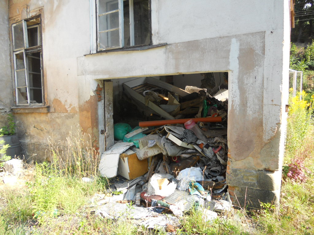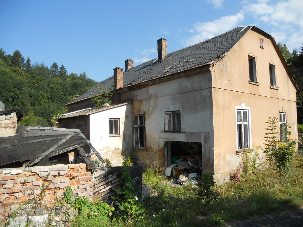 Základy má smíšené bez izolací, konstrukce objektu je zděná, tloušťka stěn je 45 cm a stropy jsou tvořeny dřevěnými trámy. Tvar střechy je sedlový – po stranách omezený půlvalbami, střešní krytina je tvořena eternitovými šablonami a klempířské prvky jsou plechové, případně zcela chybí. Vnější omítky jsou tvořeny břízolitem a zateplení pláště není provedeno. Podlahová plocha činí odhadem 150 m2. Vnitřní omítky jsou vápenocementové. Jsou zde instalována špaletová okna. Orientace obytných prostor je na sever, jih, východ, západ. V domě není žádné vybavení, chybí veškeré instalace, interiéry jsou poničené. V obytných místnostech jsou prkenné podlahy, v kuchyni je na podlaze teraco, v koupelně jsou podlahy tvořeny cementovým potěrem a v chodbě je položena keramická dlažba. Objekt je odpojen od dodávek energií. Zdrojem vody je pravděpodobně vodovod, odpady jsou svedeny do septiku za domem pravděpodobně s přepadem do potoka či trativodem. U paty domu je pilíř na plynovou přípojku. Dům je bez vytápění a nejsou zde namontována topná tělesa. Objekt nedisponuje zdrojem teplé vody. Stav domu je špatný, stěny vykazují známky poškození, praskliny, střecha je prakticky v dezolátním stavu, okna jsou v dezolátním stavu, podlahy jsou poškozeny – místy se v patře propadají, vybavení, rozvody, výplně otvorů jsou v dezolátním stavu, případně zcela chybí. Dům je určen ke kompletní rekonstrukci, a to i prvků dlouhodobé životnosti. Pozemek je rovinatý, neudržovaný, zarostlý travinami. Na pozemku se nachází ovocný strom a keře. Oplocení domu tvoří v části dřevěný plot v dezolátním stavu – v části oplocení zcela chybí. Přístup k objektu je bezproblémový po zpevněné obecní cestě. Možnost parkování je dobrá - přímo u objektu. Součástí jsou tyto venkovní stavby: torzo zděné garáže – garáž je z části zborcena, k odstranění.