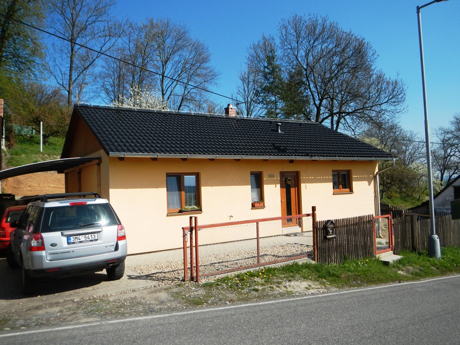 Na pozemku jsou ovocné a okrasné stromy, oplocení tvoří dřevěný plot a samotný pozemek je svažitý. Domu přiléhá krytá terasa a zastřešené parkovací stání. Přístup k objektu je bezproblémový po zpevněné obecní cestě. Parkovací možnosti jsou na vlastním pozemku.