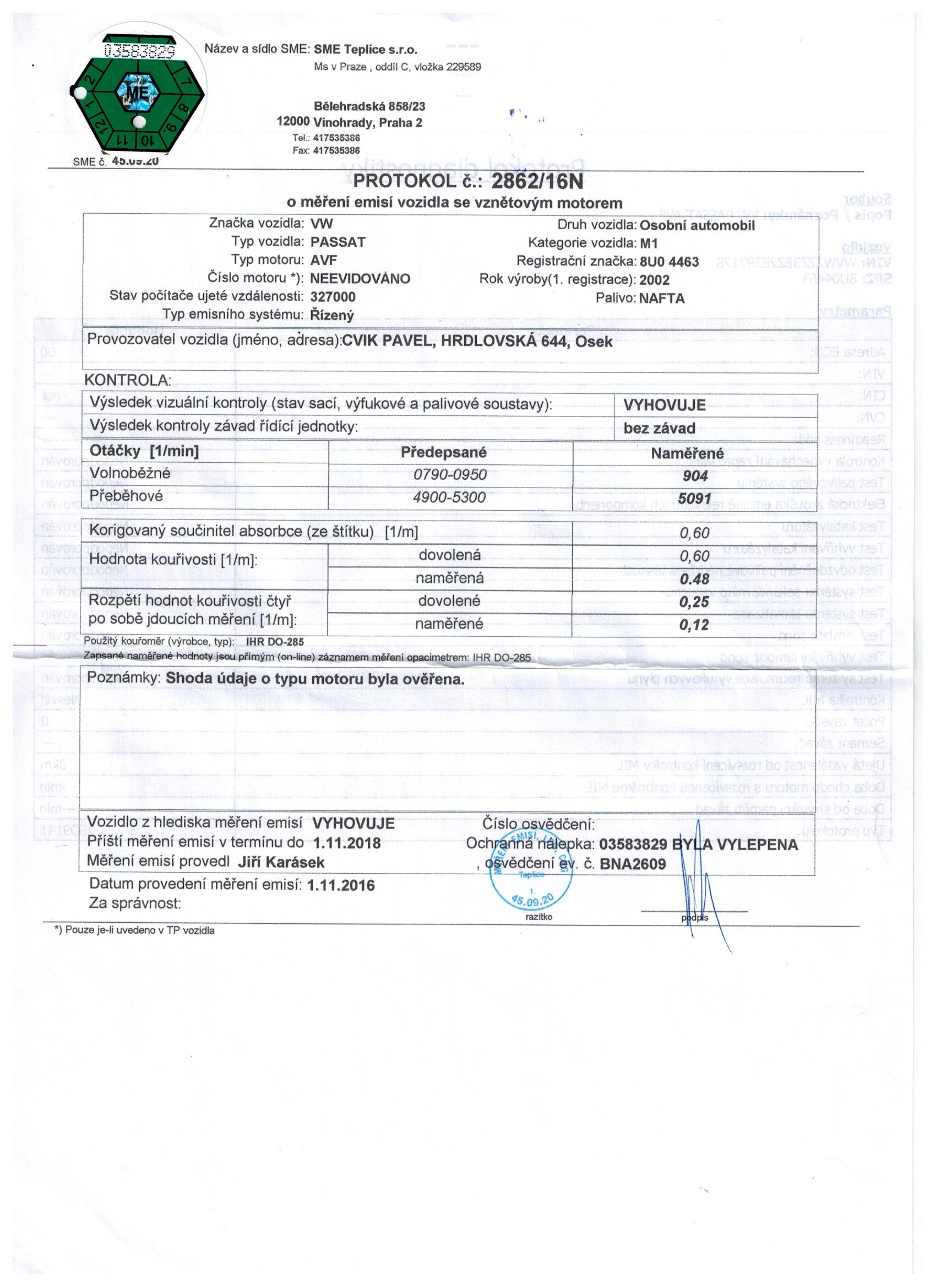 - osobní automobil kombi, zn. VOLKSWAGEN PASSAT VARIANT, RZ: 8U0 44 63, VIN: WVWZZZ3BZ2E397178, barva: šedá- metal, vybaven úpravou řízení pro postižené