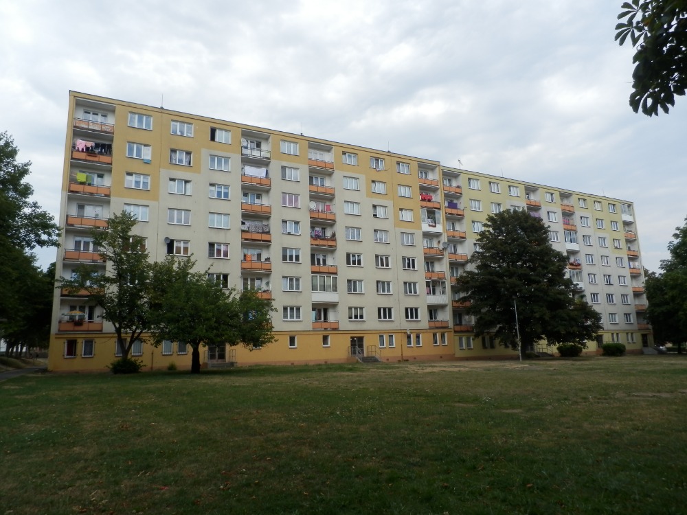 s mírným spádem ke střešním vpustím, krytina je z asfaltových svařovaných pásů, klempířské prvky z pozinkovaného plechu, střecha je opatřena bleskosvody, schodiště jsou železobetonová prefabrikovaná s povlaky z PVC, okna jsou plastová s izolačními dvojskly, dveře jsou plné i prosklené do kovových zárubní, vnitřní omítky jsou štukové. Bytový dům má vnitřní rozvod el. proudu, plynu, vody v četně teplé, kanalizace, vytápění je ústřední z dálkového zdroje včetně přípravy teplé vody. Stáří domu je 54 let. Některé konstrukce domu byly již obnoveny např. okna, vstupní dveře, zateplení vnějších povrchů apod. Na domě nejsou patrné statické nebo jiné vážnější stavební závady. Stavební stav bytového domu odpovídá provedeným úpravám a běžné údržbě.