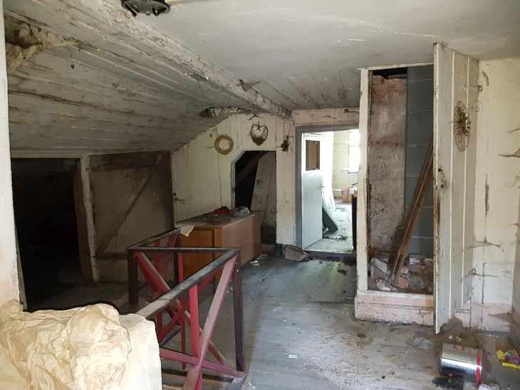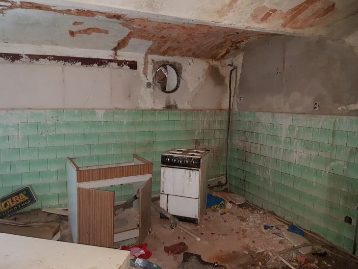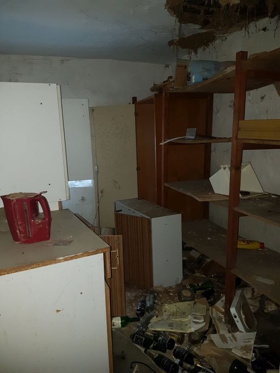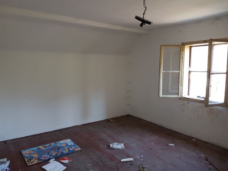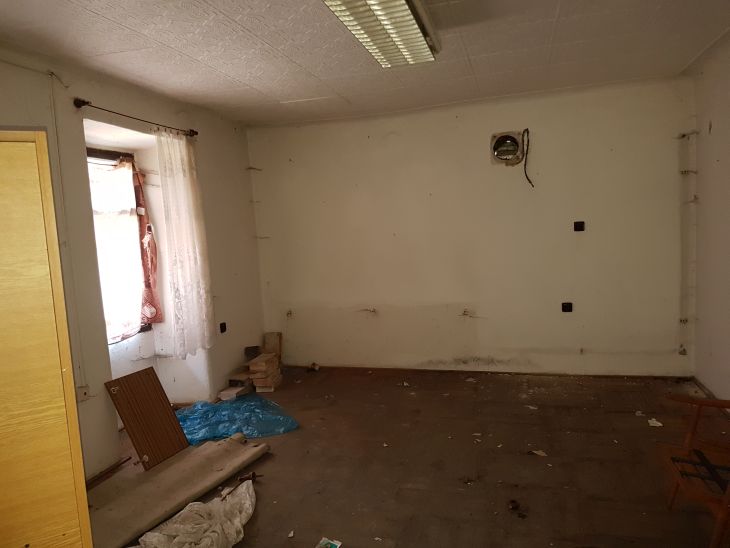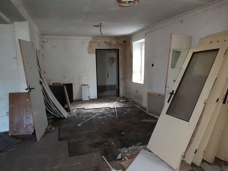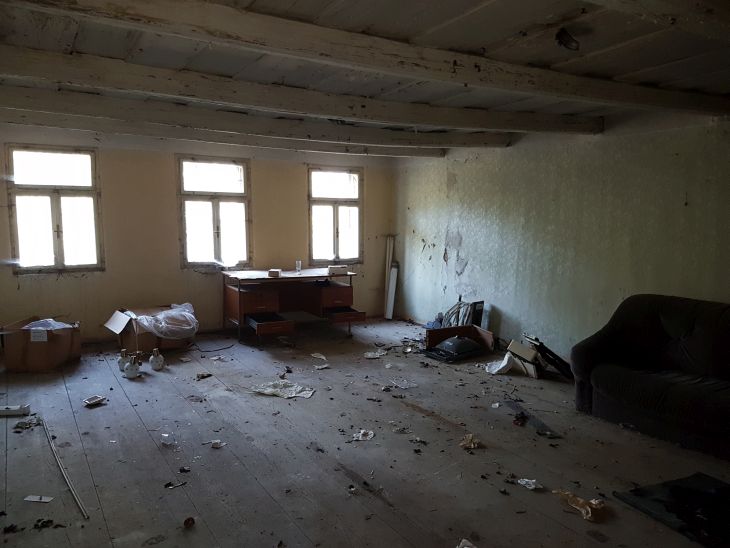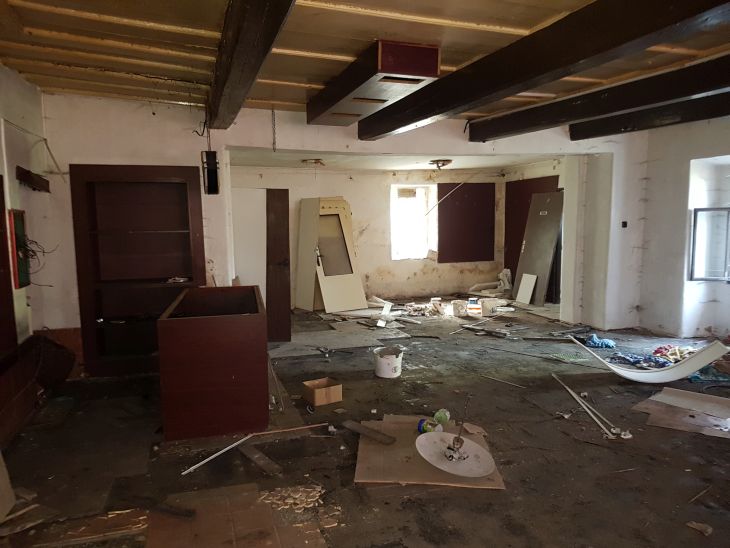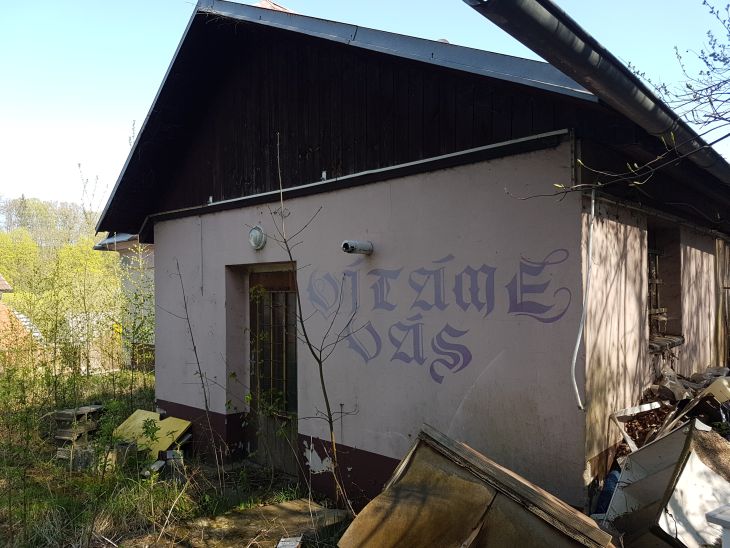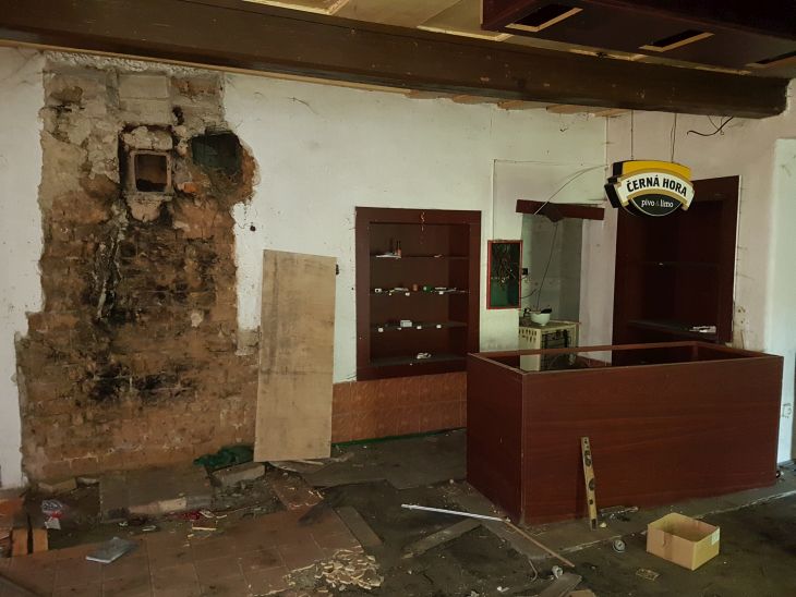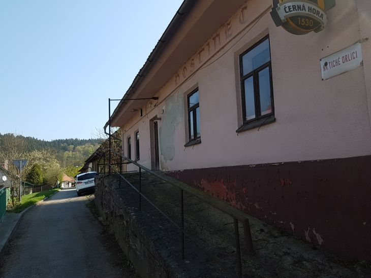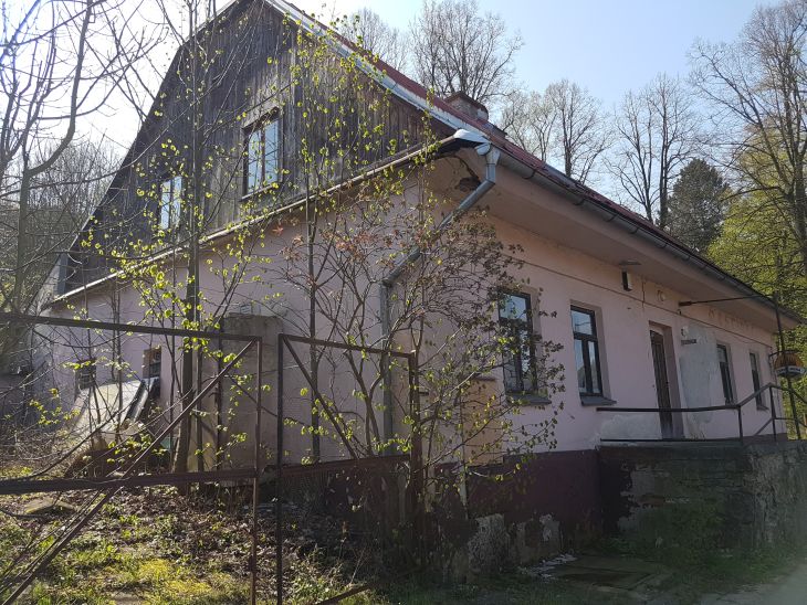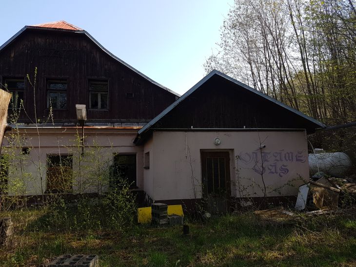 Objekt bývalé restaurace, restaurace byla postavena jako samostatný objekt a má jedno nadzemní podlaží. Objekt je částečně podsklepený, v části je půda a disponuje vybudovaným obytným podkrovím. Objekt byl postaven odhadem v roce 1910. V minulosti sloužil jako restaurace s obytnou částí v podkroví. Stavba a zejména její vybavení je zdemolované a nadále nepoužitelné. Základy jsou kamenné, konstrukce objektu je zděná z kotovic, stěny mají tloušťku 70- 80 cm a stropy jsou tvořeny dřevěnými trámy s rovným podhledem. Střešní krytina je plechová pozinkovaná a klempířské prvky jsou pozinkované. Vnější omítky objektu: vápenocementové, většinou poškozené. Zateplení pláště není provedeno. V objektu se nachází chodba o výměře 9,72 m2, chodba o výměře 10,66 m2, komora o výměře 4,08 m2, sklad o výměře 6,60 m2, předsíň o výměře 8,80 m2, plocha restaurace o výměře 86,82 m2, předsíň o výměře 8,27 m2, sklad o výměře 5,96 m2, schodiště o výměře 6,43 m2, chodba o výměře 14,37 m2, dámské WC o výměře 5,95 m2, koupelna o výměře 5,12 m2, dámské WC o výměře 7,98 m2, koupelna o výměře 4,80 m2, kuchyně o výměře 18,06 m2, pokoj o výměře 18,73 m2, pokoj o výměře 37,34 m2, pokoj o výměře 14,91 m2, pokoj o výměře 11,86 m2, sklep o výměře 14,40 m2, garáž o výměře 14,58 m2. Podlahová plocha činí 286,47 m2. Podlahová plocha vč. příslušenství činí 315,46 m2. Vnitřní omítky: vápenocementové – poškozené, v části místností chybí. Jsou zde instalována dřevěná kastlová okna, příslušenství oken chybí. Koupelna je bez vybavení, resp. Vybavení je poničené. Na oddělených WC se nachází toto vybavení: klasická toaleta, umyvadlo. Jsou zde použity tyto dveře: dřevěné plné, dřevovláknité, ve značné části objektu dveře chybí. Zárubně jsou ocelové v 1NP a dřevěné v podkroví. Vchodové dveře jsou dřevěné. Vybavení kuchyně chybí. V objektu není použita osvětlovací technika. V místnostech je podlaha řešena: keramická dlažba, cementový potěr, prkenná podlaha, v kuchyni je položena keramická dlažba, v koupelně jsou podlahy tvořeny keramickou dlažbou a v chodbě je položena keramická dlažba. V ostatních místnostech je keramická dlažba. V objektu se nenachází další vybavení. Do objektu je zavedena elektřina o napětí 230V a 400V a je připojen k rozvodné síti elektrického proudu. Zdrojem vody je vodovod, odpadní vody jsou svedeny do septiku teplé vody. Stěny vykazují známky poškození, střecha domu je zastaralá, okna jsou v dezolátním stavu, podlahy v objektu jsou v dezolátním stavu, vybavení v objektu chybí a rozvody má objekt v dezolátním stavu. Objekt je ve špatném stavu. Na pozemku u objektu se nachází náletové dřeviny a pozemek je oplocen dřevěným plotem. Samotný pozemek je mírně svažitý, místy svažitý, 1920 m2. K objektu lze přijet bez problému po zpevněné obecní cestě. Parkovací možnosti jsou na vlastním pozemku.