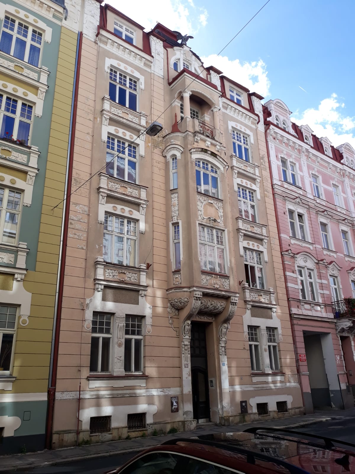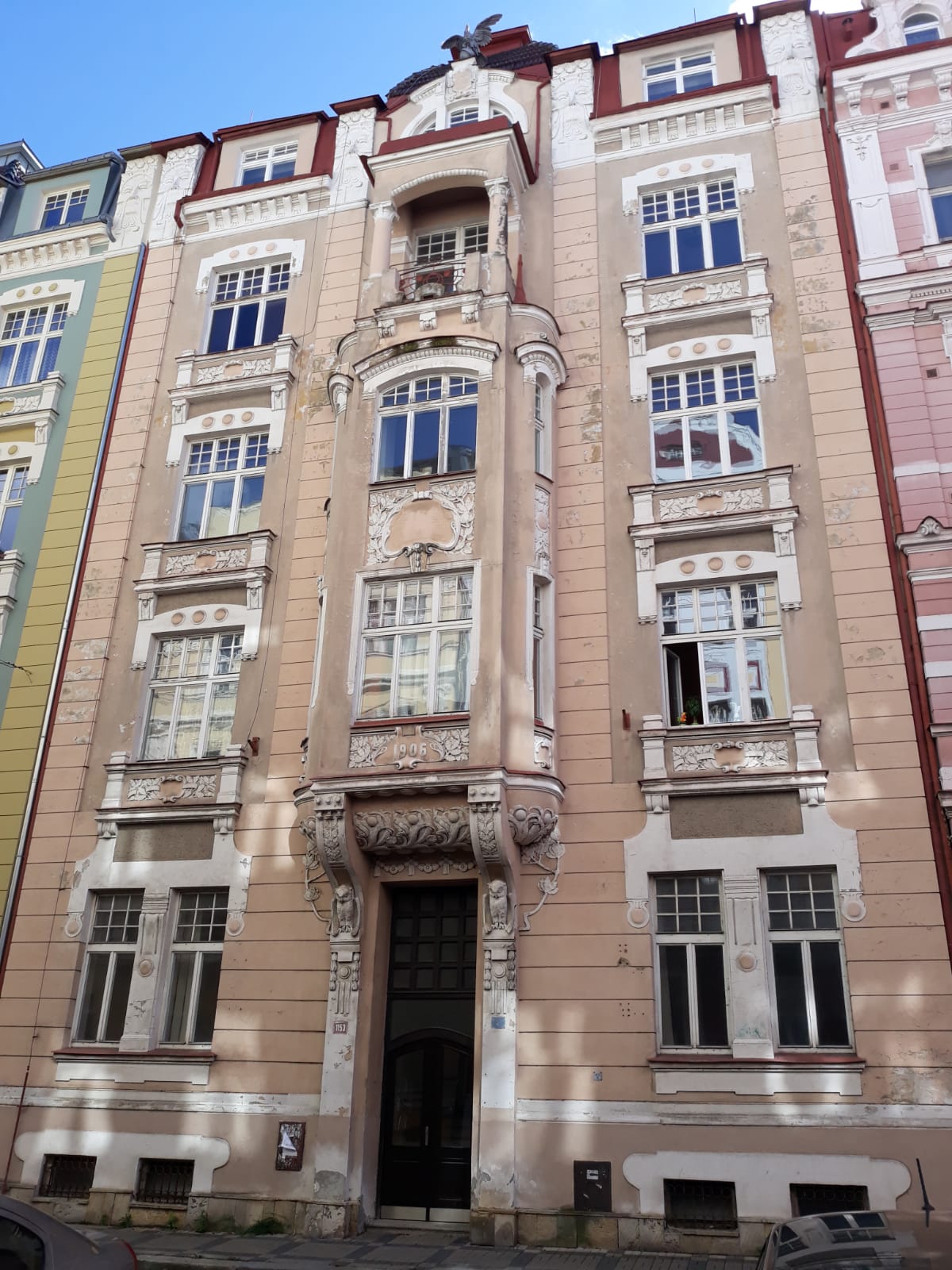 Bytový dům je řadový objekt a má celkem 4 nadzemní podlaží. Dům je celkově podsklepený, nachází se zde půda a je zde vybudováno obytné podkroví. Na základě letopočtu uvedeného na objektu byl postaven v roce 1906. Základy má smíšené bez provedených izolací, konstrukce objektu je zděná, tloušťka stěn je 45 cm a stropy jsou trámové s náspem, nad 1.PP klenbové. Střešní krytinu tvoří plech s nátěrem a klempířské prvky jsou plechové pozinkované. Vnější omítky jsou vápenocementové a stavba není zateplena. Jedná se o bytový dům, ve kterém se nachází v 1.NP dva nebytové prostory o výměře 70 m2 resp. 47,45 m2 - celkem nebytové prostory 117,45 m2. V jednotlivých dalších podlažích domu jsou pak situovány vždy dvě bytové jednotky (BJ) - ve 2.NP (z pohledu od schodů vpravo) BJ 3+1 o celkové výměře 97,40 m2; vlevo pak BJ 1+1 o celkové výměře 47,35 m2. Ve 3.NP vpravo BJ 2+1 o celkové výměře 72,00 m2; vlevo pak BJ 2+1 o celkové výměře 72,75 m2. Ve 4.NP vpravo BJ 2+1 o celkové výměře 72,00 m2, vlevo pak BJ 2+1 o celkové výměře 70,10 m2. V podkrovní části domu se nachází dvě bytové jednotky - vpravo BJ 2+1 o celkové výměře 75,05 m2; vlevo BJ 2+1 o celkové výměře 71,15 m2. Výměra všech bytových jednotek je 577,80 m2. Podlahová plocha včetně nebytových prostor činí 695,25 m2.