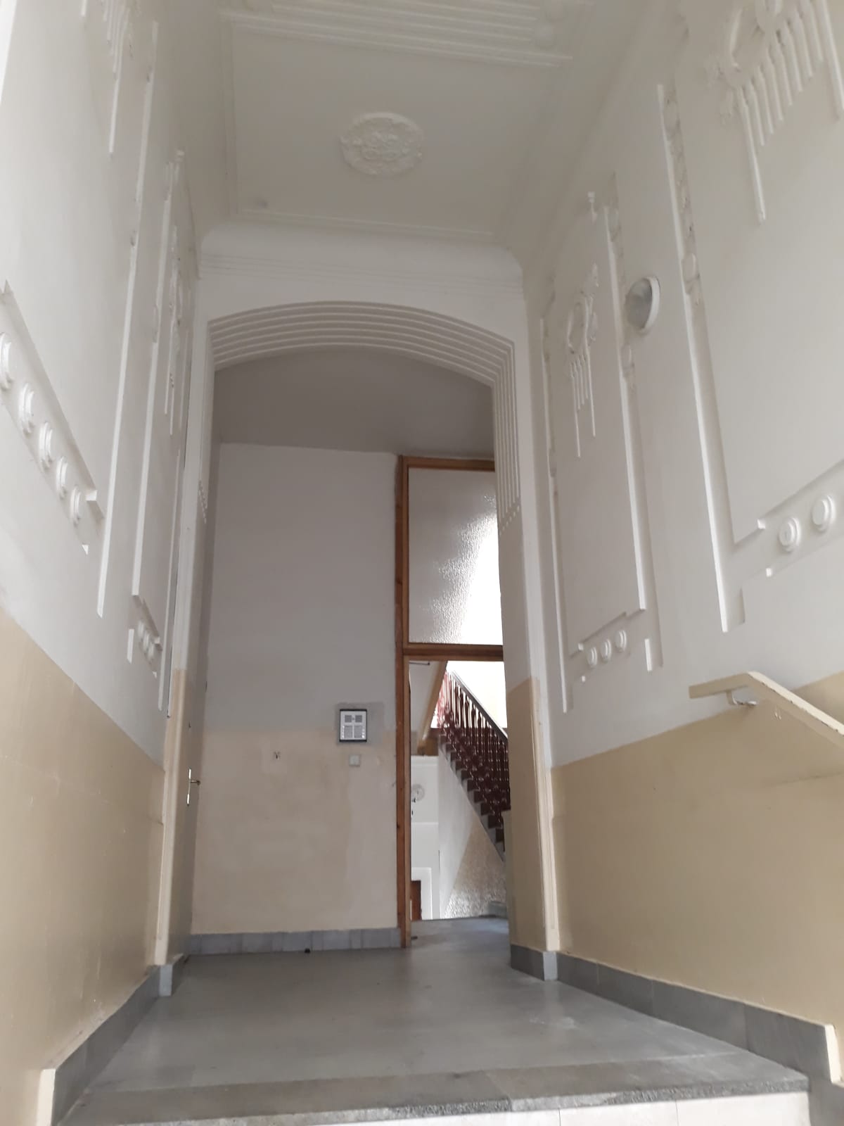 toaletou. Jsou zde použity tyto dveře: dřevěné plné, dřevěné prosklené, zárubně jsou ocelové a vchodové dveře jsou dřevěné. Kuchyně jsou vybaveny klasickou kuchyňskou linkou a sporákem. V obytných místnostech bytových jednotek jsou podlahy řešeny převážně standardními krytinami: laminátová plovoucí podlaha, koberce, lino, v kuchyni je podlaha řešena: keramická dlažba, lino, v koupelně je podlaha řešena: keramická dlažba, lino a v chodbě je na podlaze keramická dlažba, koberce, lino. Do domu je zavedena elektřina o napětí 230V a je připojen k rozvodné síti elektrického proudu. Objekt je připojen na vodovodní řad, je napojen na veřejnou kanalizaci a rozvod zemního plynu je připojen. V domě je dálkové ústřední topení a topná tělesa představují závěsné radiátory. Dům je napojen na dálkový ohřev vody. Dům za dobu své životnosti procházel pouze částečnými revitalizacemi, zásadní rekonstrukce, kromě výměny střešního podbití a střešní krytiny, nebyly provedeny. Hlavní konstrukční prvky jsou původní. Bytové jednotky jsou obyvatelné, je zde patrné, že v minulosti procházely částečnými revitalizacemi, nyní jsou spíše zastaralé s dožitými prvky. Sklepní část domu je silně zavlhlá, bylo zde provedeno sejmutí omítek pro lepší odvětrání zdiva - na zdivu jsou patrné mokré mapy. Bytový dům je určen k rekonstrukci.
