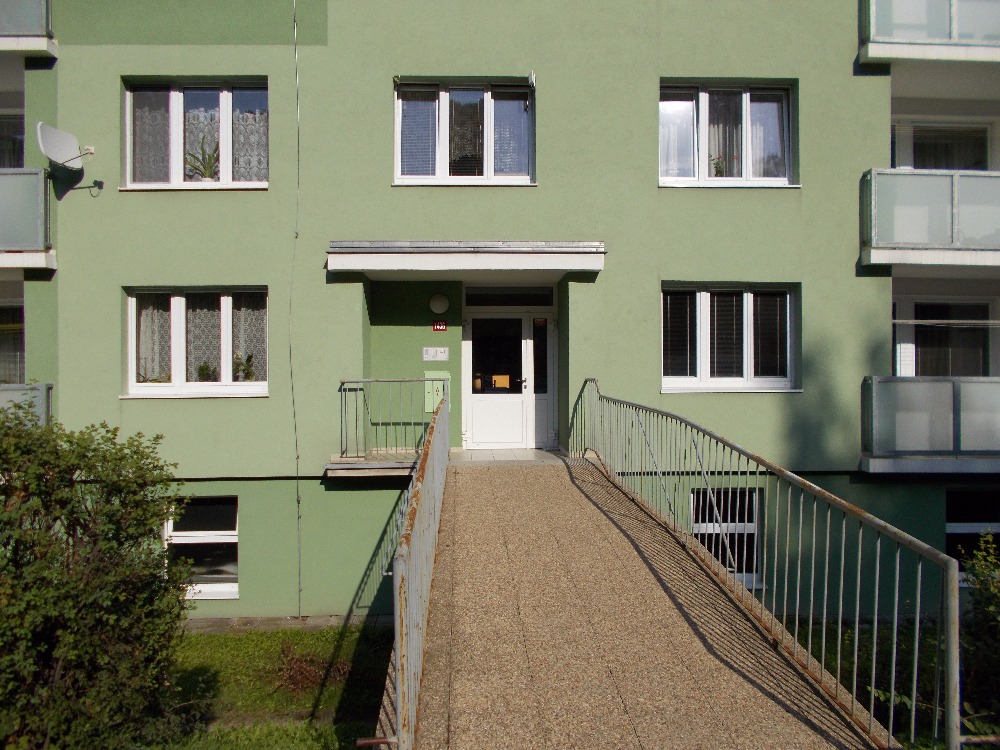 Byt je situován v krajním řadovém bytovém domě č.p. 1435, 1436 v 1. nadzemním podlaží sekce č.p. 1436. Byt o velikosti 1+2 sestává z předsíně, kuchyně, dvou pokojů, koupelny, WC. K bytu náleží loggie (3,80 m2) a podle sdělení majitelky sousedního bytu také sklepní kóje v suterénu. Podlahová plocha bytu činí 57,20 m2. Vybavení bytu tvoří vnitřní dveře, kuchyňská linka, plynový sporák, vana, umývadlo a záchod, topná tělesa, vodoměry, dále vnitřní instalace elektrického proudu, vody, kanalizace, tepla a teplé užitkové vody apod. Podlahy bytu jsou opatřeny povlaky z PVC. Bytový dům má výtah, vnitřní rozvod el. proudu, plynu, vody včetně teplé, kanalizace, vytápění je ústřední z dálkového zdroje včetně přípravy teplé vody. Bytový dům pochází z roku 1975, jeho stáří ke dni ocenění je tedy 42 roky. Některé konstrukce domu byly již obnoveny, např. původní okna byla vyměněna za plastová s izolačními dvojskly, vyměněny vchodové dveře, vnější povrchy opatřeny tepelnou izolací apod.