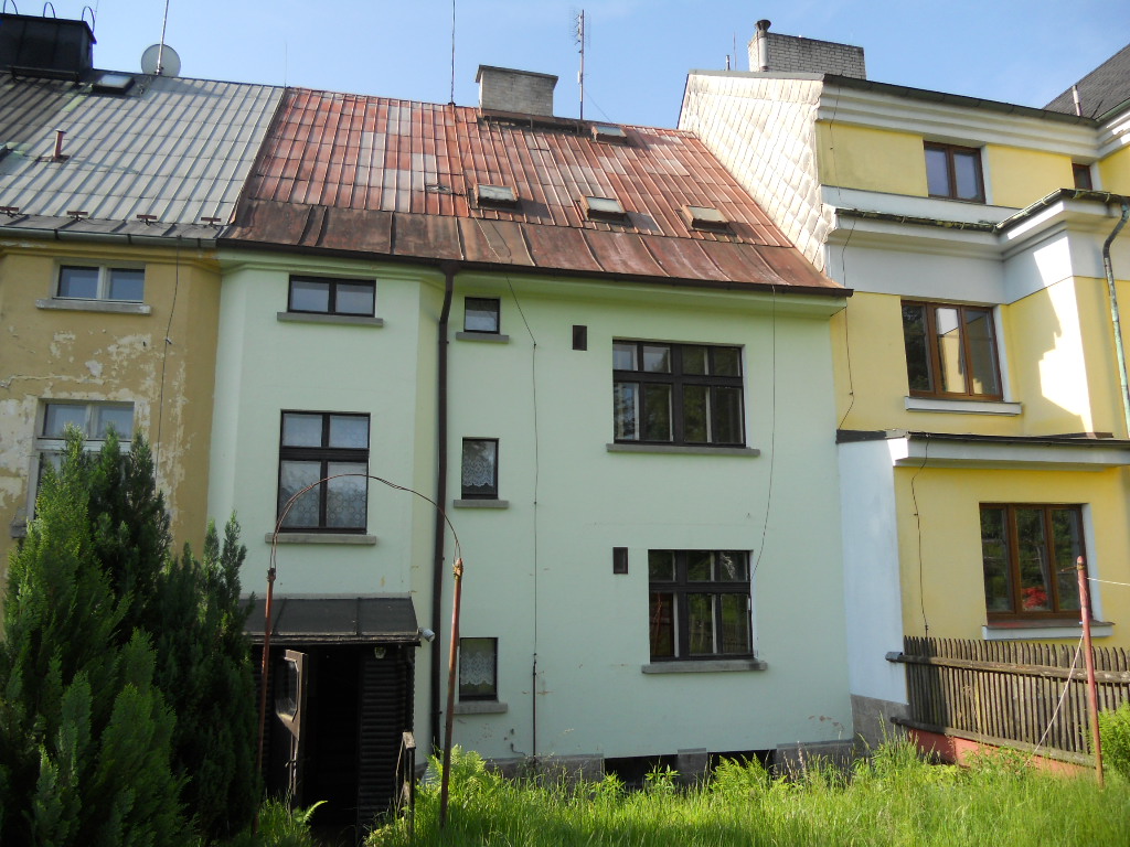 Rodinný dům byl postaven jako řadový objekt a má celkem 2 nadzemní podlaží. Dům je celkově podsklepený, je zde půda a disponuje vybudovaným obytným podkrovím. Odhadem byl objekt postaven na začátku 20. století, přibližně v roce 1935. V roce 2005 proběhla rekonstrukce těchto konstrukčních prvků: střešní krytina – částečná výměna a zateplení půdy izolační vatou. Základy jsou smíšené, konstrukce objektu je zděná, stěny mají tloušťku 45 cm a stropy jsou dřevěné trámové. Tvar střechy je sedlový, střešní krytinu tvoří plechová, částečně hliníkový plech a klempířské prvky jsou pozinkované. Vnější omítky jsou vápenocementové a zateplení pláště není provedeno. Dispozičně je dům řešen jako 2 bytové jednotky a obytné podkroví. V domě se nachází v 1.NP bytová jednotka 2+1 o výměře 48,85 m2, v 2.NP bytová jednotka 2+1 o výměře 55,80 m2. V podkroví jsou dále dva pokoje o výměře 18,00 m2 a 17,35 m2 a další tři nevytápěné místnosti - místnost o výměře 7,05 m2, místnost o výměře 6,55 m2, místnost o výměře 4,55 m2. V každém mezipatře je vždy k jednotlivému bytu z chodby přístupné WC o výměře 1,10 m2. V domě je dále schodiště o celkové výměře 25,25 m2, chodby o výměře 28,35 m2, dále pak komora (mimo byt) o výměře 1,35 m2, půda o výměře 41,60 m2, komora (mimo byt) o výměře 1,05 m2. Ve sklepě je prádelna o výměře 17,20 m2 a sklepní místnosti o výměře 39,95 m2. Podlahová plocha činí 211,90 m2. Podlahová plocha vč. příslušenství činí 314,00 m2. Vnitřní omítky jsou vápenocementové. Jsou zde špaletová okna. Orientace obytných prostor je na sever, jih. V koupelně se nachází klasická vana, umyvadlo a WC je vybaveno klasickou toaletou. V domě jsou dřevěné plné interiérové dveře, zárubně dveří jsou ocelové a vchodové dveře jsou dřevěné. Kuchyňské vybavení tvoří v 1.NP linka, sporák chybí - 2.NP chybí linka, pl. sporák. Stropní svítidla většinou chybí. V obytných místnostech je položeno lino, v kuchyni je na podlaze lino, koupelna má na podlaze keramickou dlažbu a v chodbě je na podlaze teraco. Do domu je zavedena elektřina o napětí 230V a 400V - v současné době odpojeno od distribuční sítě. Objekt je připojen na vodovodní řad, je napojen na veřejnou kanalizaci a je zde zaveden zemní plyn - v současné době odpojeno od distribuční sítě. Dům je vytápěn ústředně pomocí plynového kotle a topná tělesa jsou závěsné radiátory. Ohřev vody je řešen bojlerem. Dům je v původním stavu. Hlavní konstrukční prvky jsou funkční, konstrukční prvky krátkodobé životnosti jsou většinou dožité či v mezním stavu. Rodinný dům je vhodný k celkové rekonstrukci.