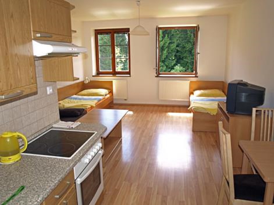 Jedná se o řadovou jednopodlažní stavbu typu bungalovu v místní zástavbě totožného charakteru. Stavba je standardního provedení s průměrným opotřebením. V budově jsou dvě provozovny a dva apartmány. Nachází se v Lipně nad Vltavou v blízkosti břehu Lipenské přehrady. V okolí je dostupná veškera občanská vybavenost obce. Dopravní spojení je autobusovou linkou do Českého Krumlova. Jedná se o část v intravilánu obce využívané pro rekreační účely.