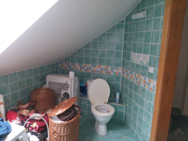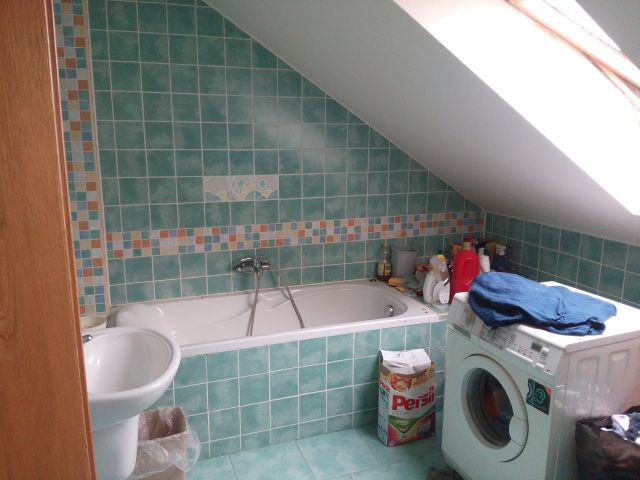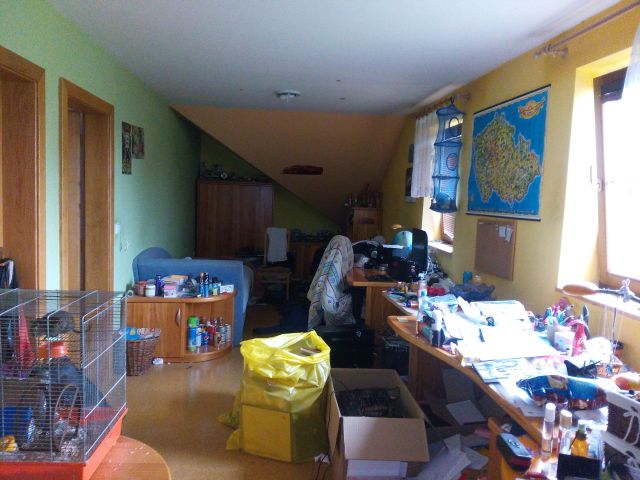 Dispozičně je dům řešen jako 5+kk. Podlahová plocha činí 179,24 m2. Podlahová plocha vč. příslušenství činí 331,38 m2. Vnitřní omítky jsou vápenocementové. Okna jsou plastová s dvojsklem, dřevěná s dvojsklem, v celém objektu jsou instalovány žaluzie. Orientace obytných prostor je na severozápad, jihovýchod a jihozápad. Koupelnové vybavení tvoří v jedné koupelně rohová hydromasážní vana, sprchový kout a umyvadlo, ve druhé koupelně klasická vana, umyvadlo a klasické WC a WC je vybaveno závěsnou toaletou. V domě jsou použity dřevěné plné interiérové dveře, zárubně dveří jsou obložkové a vchodové dveře jsou dřevěné. Kuchyně je vybavena kuchyňskou linkou s vestavěnými spotřebiči. Osvětlovací techniku tvoří lustry a zářivková svítidla. V obytných místnostech podlahu tvoří vlýsky, koberce nebo korková podlaha, v kuchyňském koutě je korková podlaha, v koupelně jsou podlahy tvořeny keramickou dlažbou a chodba má na podlaze položenou keramickou dlažbu. V ostatních místnostech je položena keramická dlažba. Do domu je zavedena elektřina o napětí 230V a 400V a je připojen k rozvodné síti elektrického proudu. Zdrojem vody je vodovod, odpady jsou svedeny do septiku a zemní plyn je zaveden. Dům má ústřední topení pomocí plynového kotle a topná tělesa představují závěsné radiátory. Ohřev vody je řešen bojlerem. V ložnici, spíži a kolem komína v hale jsou známky zatékání. Kolem oken v podkrovním pokoji je na stěnách plíseň. Zábradlí na balkoně je ve zhoršeném stavu. Dešťové svody jsou porušeny. Ve špatném stavu je bojler a podlaha v jeho okolí. Dům má zanedbanou údržbu, ale přes popsané závady je vzhledem k vybavení domu jeho stav hodnocený jako dobrý. Na pozemku se nachází okrasné a ovocné dřeviny a pozemek je oplocen pletivem do ocelových sloupků, oplocení od ulice není dokončeno. Sklon pozemku je mírně svažitý. Přístup k objektu je bezproblémový po zpevněné obecní cestě. Možnost parkování je na vlastním pozemku. K domu náleží garáž, která je zděná (tl. stěn 30 cm). Střecha garáže je pultová, střešní krytinu tvoří betonové tašky, klempířské prvky jsou měděné. Stropy jsou dřevěné, podlaha betonová, okna jsou dřevěná s dvojskly, vrata chybí. Je zde zavedená elektřina, vodovod a připravena kanalizace. V jednotném funkčním celku s rodinným domem je využívána také část pozemku 1491/2 v majetku cizí osoby.