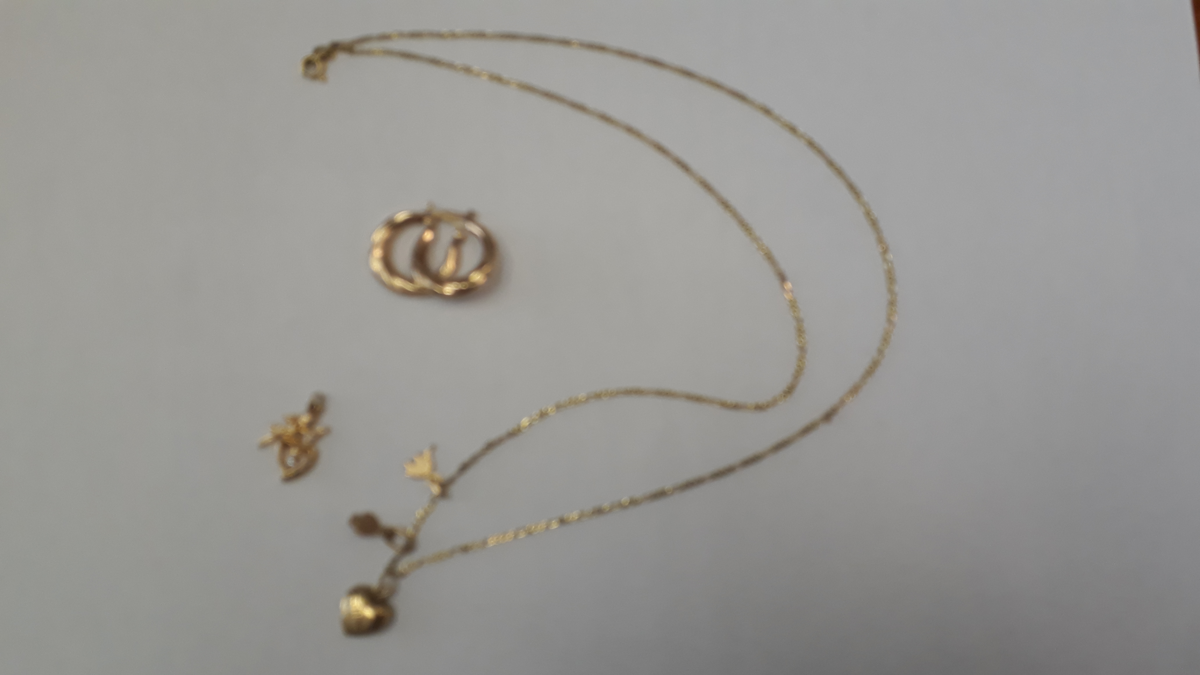 Předměty, kromě přívěsku ze žlutého kovu- srdíčko (vyroben z blíže neurčeného materiálu), mají puncovní značku 585, což odpovídá ryzosti 14karátového zlata.