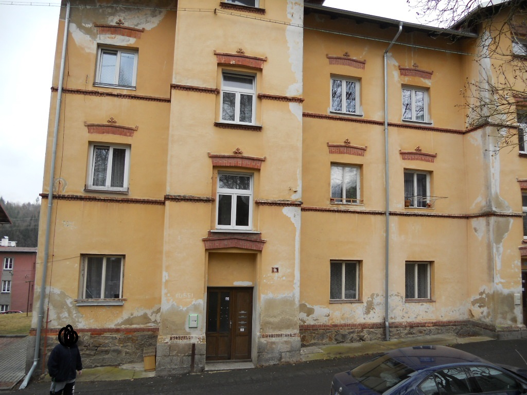 V obytných místnostech je prkenná podlaha, v koupelně a na WC je položeno lino. Byt je v současné době odpojen od distribuční sítě elektrické energie. Objekt je připojen na vodovodní řad a je napojen na veřejnou kanalizaci. Byt je napojen na domovní kotelnu - ústřední topení a topná tělesa jsou závěsné radiátory. Ohřev vody je centrální. Stav bytové jednotky je velmi špatný, prakticky jsou veškeré prvky vybavení zcela dožité, poničené, případně zcela chybí. Stěny objektu, podlahy, rozvody, okna, dveře, vše původní, zcela dožité. Rovněž vybavení koupelny – sanita zcela dožitá či značně poničená. Bytová jednotka je určena ke kompletní rekonstrukci.
