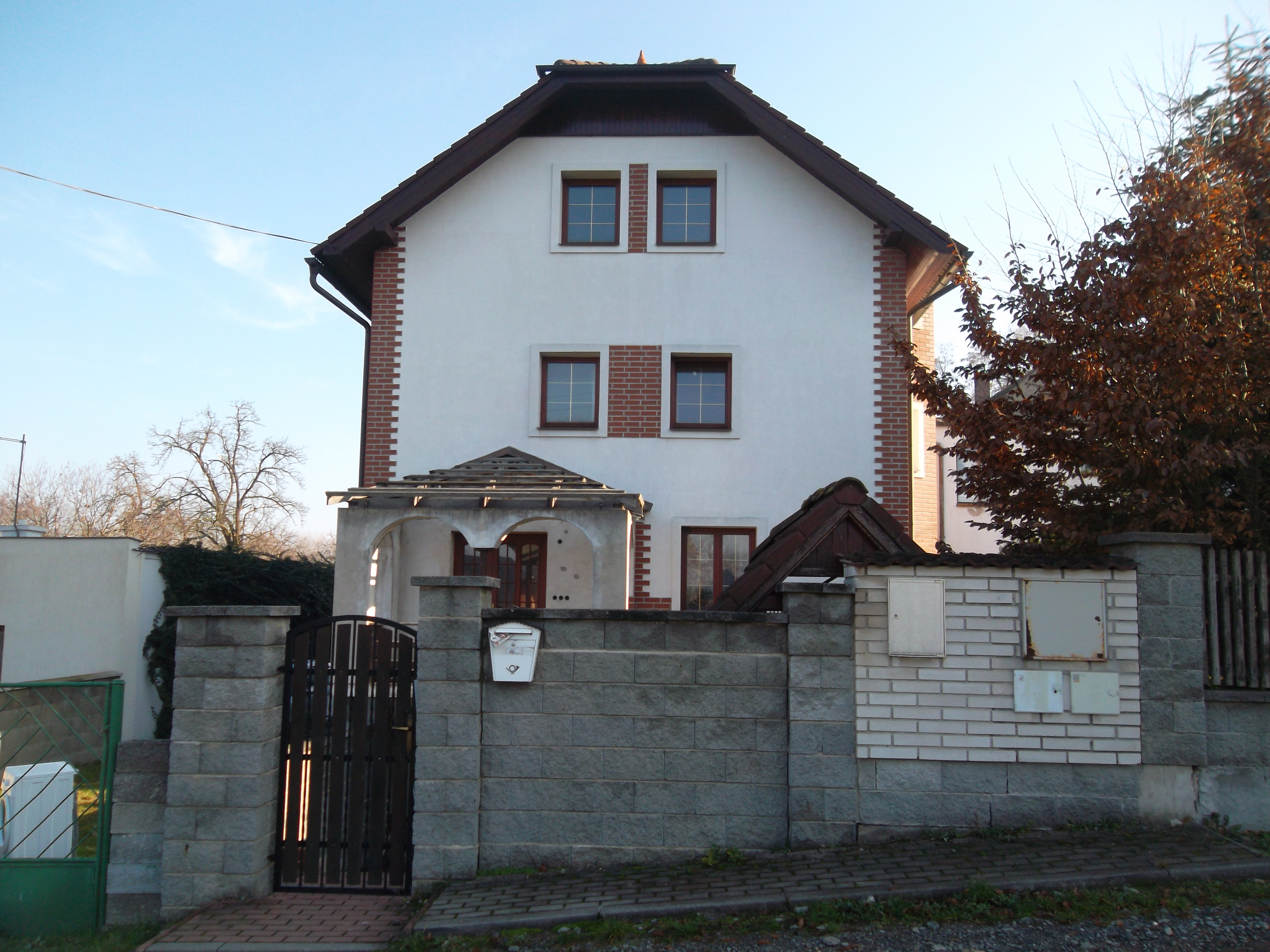 Rodinný dům byl postaven jako samostatný objekt (původně se jednalo o přestavbu, přístavbu a nástavbu původního RD, ale dle všeho je vystavěn od základů nově) a má celkem 2 nadzemní podlaží. Dům je celkově podsklepený, není zde půda a disponuje vybudovaným obytným podkrovím. Ze stavební dokumentace plyne, že výstavba proběhla v letech 2002 až 2010. Základy má betonové izolované, objekt je zděné konstrukce, stěny mají tloušťku 40 cm a stropy jsou železobetonové monolitické. Tvar střechy je polovalbový, střešní krytina je tvořena betonovou taškou a klempířské prvky jsou plechové pozinkované. Součástí jihozápadní boční strany je středový polygonální rizalit obložený pásky klinker, s vlastní střechou ve tvaru šestibokého jehlanu. Vnější omítky jsou tvořeny břízolitem a plášť je zateplen polystyrenem. Dispozičně je dům 6+1. Podlahová plocha činí 178,99 m2. Podlahová plocha vč. příslušenství činí 229,43 m2. Vnitřní omítky jsou štukové. Jsou zde instalována kvalitní dřevěná okna s dvojsklem. Obytné prostory jsou orientovány na jihozápad. Vybavení koupelny tvoří rohová vana, umyvadlo a na WC je závěsná toaleta. V domě jsou dřevěné plné interiérové dveře, zárubně dveří jsou dřevěné a vchodové dveře jsou dřevěné bezpečnostní. V kuchyni je instalována kuchyňská linka s vestavěnými spotřebiči. V domě je použita tato osvětlovací technika: lustry, bodová svítidla, zářivková svítidla. V obytných místnostech je podlaha řešena: dřevěná plovoucí podlaha, vlýsky, keramická dlažba, v kuchyni jsou podlahy tvořeny keramickou dlažbou, v koupelně jsou podlahy tvořeny keramickou dlažbou a v chodbě je položena keramická dlažba. V ostatních místnostech je položena keramická dlažba. Mezi další vybavení domu patří: vestavěná skříň, krb, digestoř. Do objektu je zavedena elektřina o napětí 230V a 400V a je napojen na rozvodnou síť elektrického proudu. Objekt je připojen na vodovodní řad, má připojení na veřejnou kanalizaci a zemní plyn není zaveden. Řešení vytápění v domě: elektrokotel, zplyňující kotel na dřevo, krbová vložka a topná tělesa zastupuje podlahové vytápění. V domě je pro ohřev vody využíván bojler. Stěny objektu jsou bez vad (není dokončeno několik m2 fasádní omítky), střecha je bez vad, okna jsou v bezvadném stavu a v nadstandardním provedení, podlahy jsou bez vad, vady vybavení nejsou a rozvody v objektu jsou bez vad. Pokoje v podkroví nejsou dokončeny, chybí instalace podlahového topení, povrchy podlah a dveře s obložkami. Nedokončené schodiště do podkroví (schodnice) a koupelna v 2.NP. Stav rodinného domu je velmi dobrý. S rodinným domem je podzemní chodbou a společnou kotelnou propojen objekt č.p. 3459 (provozovna holičství a kadeřnictví), který je zasazen do svahu. Objekt č.p. 3459 má celkem 2 nadzemní podlaží a má 1 podzemní podlaží. V objektu není půda a nemá vybudované obytné podkroví. Základy jsou betonové izolované, objekt je zděné konstrukce a stropy jsou tvořeny železobetonovým monolitem. Má rovnou střechu, střešní krytinu tvoří živičná lepenka a klempířské prvky jsou plechové pozinkované. Vnější omítky jsou vápenocementové a dům není zateplen. Na základě předloženého kolaudačního rozhodnutí byl objekt postaven v roce 1998. Stěny jsou bez vad, střecha je bez vady, okna v objektu jsou bez vad, podlahy jsou bez vad, vady vybavení nejsou zřejmé a rozvody v objektu jsou bez vad. Stav objektu je dobrý. Prostor je zkolaudován jako holičství a kadeřnictví. Podlahová plocha činí 80,30 m2. Podlahová plocha vč. příslušenství činí 193,40 m2. Do nebytového prostoru je zavedena elektřina o napětí 230V a dodávky zajišťuje rozvodná síť elektrického proudu. Je zaveden vodovod, je napojen na veřejnou kanalizaci a zemní plyn není zaveden. Nebytový prostor je vytápěn společně s RD dřevo zplyňujícím kotlem a topná tělesa jsou závěsné radiátory. Ohřev vody je řešen bojlerem. Na pozemku, který náleží k objektům, jsou okrasné dřeviny a oplocení tvoří dřevěný plot s podezdívkou a sloupky z KB bloků. Samotný pozemek je rovinatý jinak ve svažitém okolí.