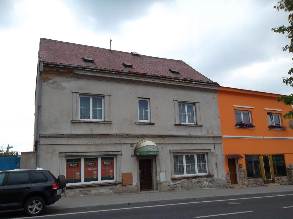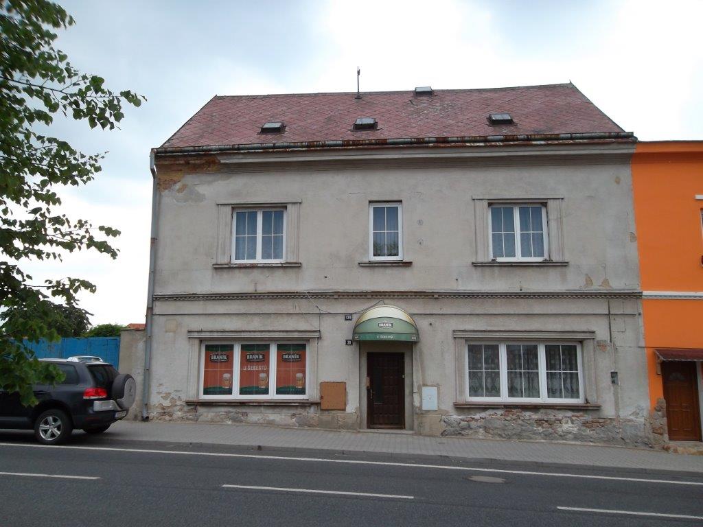 1.NP (přízemí) - kde se nachází nebytový prostor bývalé „hospody“ se vstupní chodbou, dvěma původně obytnými místnostmi, kuchyní, skladem a dvěma sociálními zařízeními pro ženy a muže, vstupem do suterénu a schodištěm do 1.patra a mezaninu, kde se nachází skladový prostor