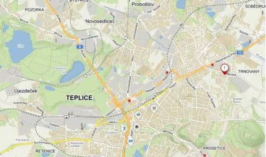 Pozemky se nacházejí na západním okraji města Teplice, v Trnovanech, v ulici Na Zborově, v zástavbě řadových garáží. Souvislou okolní zástavbu tvoří především rodinné domy, jižním směrem navazuje sídlištní lokalita Šanov II. Garáže jsou užívány místními, pronajímání v místě není příliš rozšířené, poloha je mírně odlehlá, za zahradami rodinných domů. Parc.č. 1987/2 k.ú. Teplice – Trnovany o rozloze 95 m2 – pás pozemku tvořící zpevněné nájezdy řadových garáží, proluka/ulička mezi celky řadových garáží a pás za řadovými garážemi sousedící se zahradou rodinného domu, při místním šetení přístupná pouze část do ulice. Parc.č. 1987/7 k.ú. Teplice – Trnovany o rozloze 2 m2 – úzký pruh pozemku zastavěného řadovou garáží, při místním šetření nepřístupný (oploceno brankou). Parc.č. 1987/8 k.ú. Teplice – Trnovany o rozloze 2 m2 – úzký pruh pozemku za řadovou garáží, při místním šetření nepřístupný (oploceno brankou). Parc.č. 1988/2 k.ú. Teplice – Trnovany o rozloze 62 m2 – pás pozemku za řadovými garážemi sousedící se zahradou rodinného domu, při místním šetření nepřístupná (oploceno brankou). Parc.č. 1988/9 k.ú. Teplice – Trnovany o rozloze 2 m2 – úzký pruh pozemku zastavěného řadovou garáží, při místním šetření nepřístupný (oploceno brankou). V dostupné části pozemků nebyly zjištěny trvalé porosty. Pozemky jsou přístupné z ulice Na Zborově ze zpevněné veřejné komunikace. Částečně se jedná o zpevněné plochy – nájezdy ke garážím.