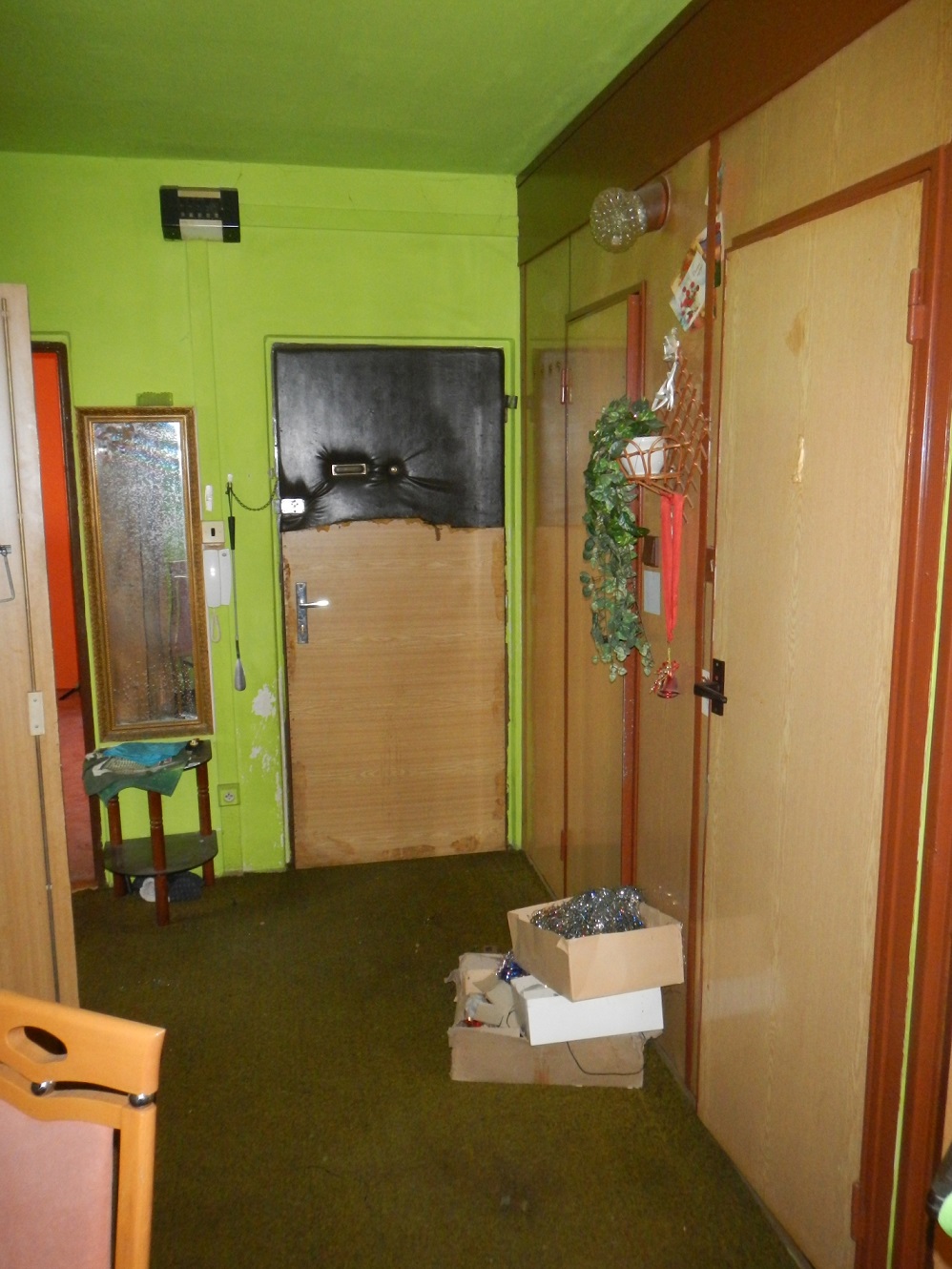 Předmět dražby 1 a 2 je v dražebním řízení veden jako celek. Bytová jednotka je umístěna v typovém panelovém bytovém domě. Počet nadzemních podlaží domu je 6 a dům má jedno podzemní podlaží. Objekt je panelové konstrukce a stropy jsou železobetonové. Střecha je rovná, střešní krytinu tvoří živičná lepenka a pro klempířské prvky byl použit pozinkovaný plech. Vnější omítky jsou štukové a zateplení pláště je z polystyrenu. Dům má tyto společné prostory: vstupní prostor, schodiště, výtah, kolárna, kočárkárna, sušárna. Zdroj informace o době výstavby: starší znalecký posudek, rok výstavby: 1986. Stav bytového domu je velmi dobrý. Dům je po celkové revitalizaci – výměna stoupaček, zateplení domu, výměna oken, výtahu a střešní krytiny. Mimo přiměřeného opotřebení nebyly shledány významnější vady. Vlastnictví bytové jednotky je osobní. Je umístěna v 4. podlaží a dispozičně se jedná o 4+1, příslušenstvím je lodžie o výměře 2,47 m2, sklepní kóje o výměře 4,35 m2. Podlahová plocha činí 87,12 m2. Podlahová plocha vč. příslušenství činí 93,94 m2. Jádro v bytě je z umakartu. V koupelně se nachází klasická vana, umyvadlo a na WC je klasická toaleta. Okna jsou v jednotce plastová. Zárubně dveří jsou ocelové. Je instalována kuchyňská linka bez vestavěných spotřebičů. Podlahy jsou kryty koberci a PVC. Do bytu je zavedena elektřina, vodovod, je napojen na veřejnou kanalizaci a je zde zaveden zemní plyn. Vytápění bytové jednotky je ústřední plynové a topná tělesa tvoří závěsné radiátory. Byt je napojen na dálkový ohřev vody. Byt je před rekonstrukcí. Není obýván a pravidelně udržován, vnitřní vybavení je zastaralé, povrchy zašlé, dveře částečně poškozené. Hlavním negativem je původní umakartové jádro.