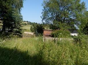 Jedná se o zatravněný pozemek. Na pozemku se nachází zbořeniště a improvizovaná stavba dřevěné kolny v dezolátním stavu. V jihozápadní části pozemku se nachází jáma. Součástí pozemku jsou trvalé porosty. V územním plánu je zařazen do území ZP- zeleň přírodního charakteru. Pozemek zjevně není územním plánem určen k zastavění. Odkaz na územní plán Oseka: https://www.osek.cz/assets/File.ashx?id_org=11298&id_dokumenty=9942 .