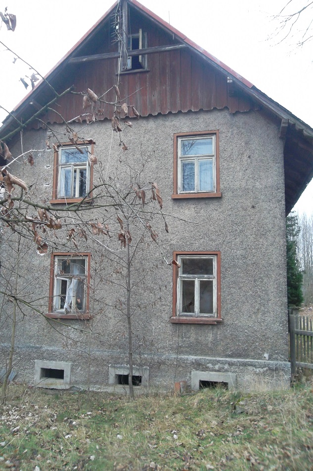 Rodinný dům byl postaven jako samostatný objekt a má celkem 2 nadzemní podlaží. Dům je celkově podsklepený, je zde půda a je zde vybudováno obytné podkroví. Objekt byl postaven odhadem v roce 1930. Základy jsou betonové, objekt je cihlové konstrukce, tloušťka stěn je 45 cm a stropy jsou z trámové s povalem, v I. PP jsou cihelné klenby. Objekt má sedlovou střechu, střešní krytina je tvořena eternitovými šablonami a klempířské prvky jsou pozinkované. Vnější omítky jsou vápenocementové a stavba není zateplena. Dispozičně je dům řešen jako 4+1. Podlahová plocha činí 113,86 m2. Podlahová plocha vč. příslušenství činí 155,86 m2. Vnitřní omítky jsou vápenocementové. Jsou zde špaletová okna. Obytné prostory jsou orientovány na sever, jih, západ. V koupelně se nachází klasická vana, umyvadlo a na WC v mezipatře je klasická toaleta. Jsou zde použity tyto dveře: dřevěné plné, dřevěné prosklené, mají dřevěné zárubně, místy ocelové (v I. NP). Vchodové dveře jsou dřevěné. Vybavení kuchyně: kuchyňská linka bez vestavěných spotřebičů, sporák chybí. V objektu není použita osvětlovací technika. V obytných místnostech je podlaha řešena: cementový potěr, prkenná podlaha, kuchyně má na podlaze lino, v koupelně je položena keramická dlažba a chodba má na podlaze teraco. V domě je zavedena elektřina o napětí 230V a 400V, přípojka zdroje elektrického proudu je odpojena. Zdrojem vody je: místní zdroj (společná studna) na sousedícím pozemku, který však není v současnosti připojen. Dům je pravděpodobně napojen na jímku a zemní plyn není zaveden. Řešení vytápění v domě: původně kotel na tuhá paliva, který chybí a byly zde použity závěsné radiátory, které též chybí. Dům nemá zdroj teplé vody. Stěny objektu jsou z kvalitního zdiva bez vad, střecha je v okrajích poškozena, špaletová okna vykazují známky poškození, podlahy jsou zastaralé, objekt je v dezolátním stavu, avšak příhodný pro rekonstrukci. Na pozemku, který náleží k objektu, je několik kusů okrasných dřevin a již větší nálety. Pozemek byl oplocen dřevěným plotem, který je v současnosti v dezolátním stavu. Sklon pozemku je mírně svažitý. K objektu je bezproblémový přístup po zpevněné obecní cestě. Jsou zde dobré parkovací možnosti přímo u objektu.
